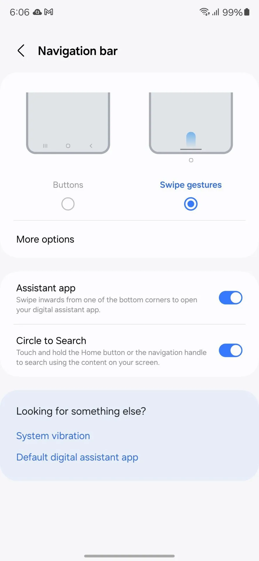 Unless you are setting up your new Samsung Galaxy phone from an older model, it will use the outdated three-button navigation mechanism. If you enjoy it, that is OK. However, I find Android’s gesture navigation more intuitive—everything is a swipe away rather than an on-screen button.
