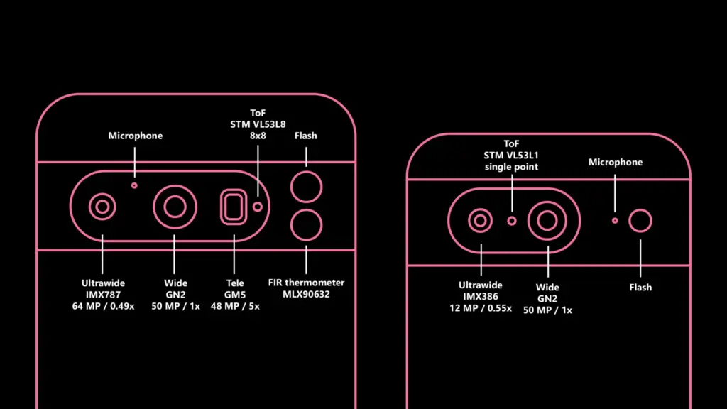 | Ultrawide | Sony IMX386 (12MP) – 0.67x zoom ratio | Sony IMX386 (12MP) – 0.55x zoom ratio | Sony IMX787 (64 MP) – 0.49x zoom ratio | Sony IMX386 (12MP) – 0.56x zoom ratio |