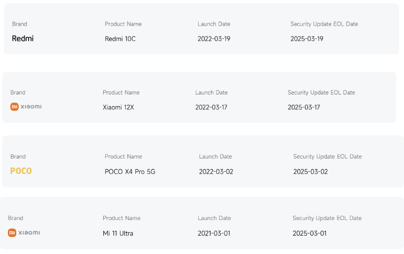According to their Product Software Support Information page, Xiaomi has officially announced the end of security updates for some of its most popular products, marking a significant milestone for its fans throughout the world.